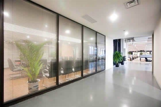 玻璃隔斷在不同空間區域都可以進行靈活組合運用,合理利用玻璃隔斷設計空間區域,會營造出更大的空間感知效果,使整體辦公室空間表現更美觀、靈活、實用,在需要隱蔽的空間,選擇雙玻璃百葉隔斷,可以達到很好的屏蔽效果,并且隔音效果也更好,使用玻璃隔斷裝飾的好處還表現在占地面積小、安裝周期短,可以快速投入使用。