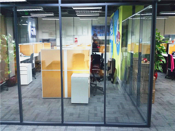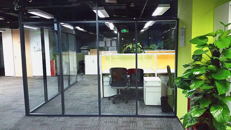 雙玻隔斷即雙層玻璃隔斷,其基本結構是由雙層玻璃和鋁金屬型材構成的隔斷墻體,牢固耐久,整體感更強,且雙層玻璃中間加入各式百葉,可實現更多效果
