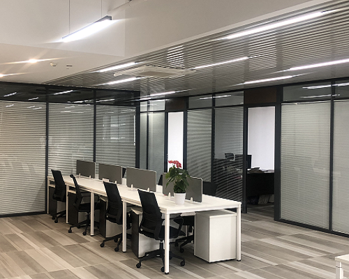 雙玻隔斷即雙層玻璃隔斷,其基本結構是由雙層玻璃和鋁金屬型材構成的隔斷墻體,牢固耐久,整體感更強,且雙層玻璃中間加入各式百葉,可實現更多效果